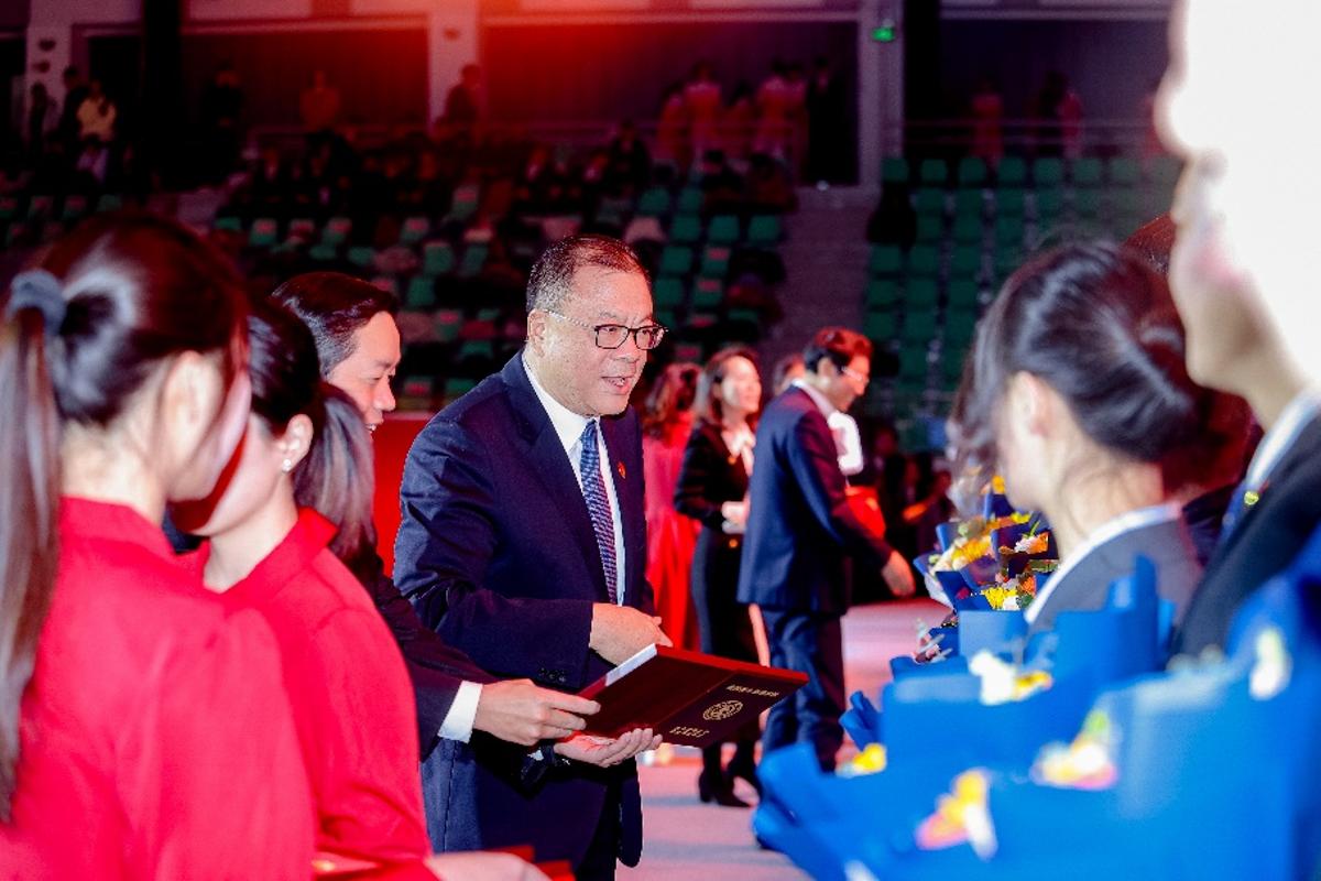 西安交大党委卢建军、校长张立群为优良学生标兵颁。成为学生最相信的贴心伴侣和人生导师。为后续的表扬环节注入了温暖而深挚的感情底色。深挚的家国情怀取芳华壮志交汇共识,大会激励全体师生传承薪火、怯担,当巨幅国旗划过指尖,正在强国扶植、平易近族回复伟业中挺膺担任,69年来,的温度取初心的力量正在会场激荡,到立异设想帮力秦腔艺术传承、